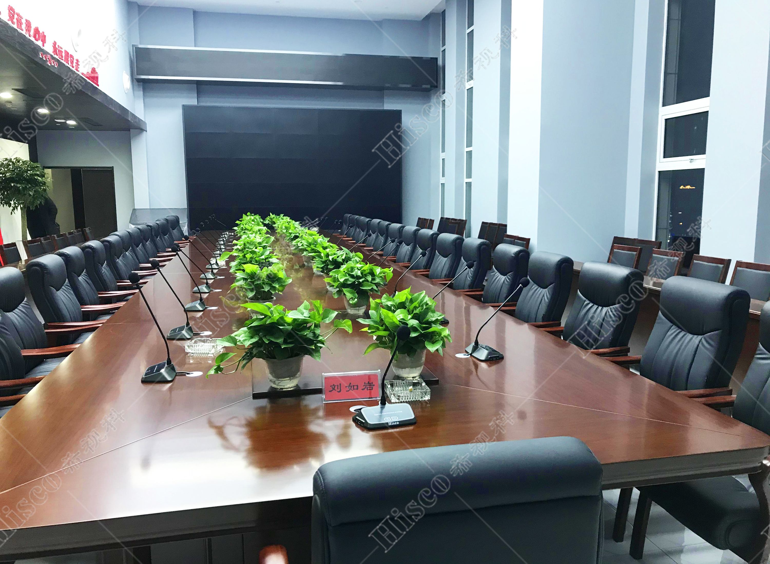 随着当今科技的飞速发展,老式的会议形式已无法适应现代化会议系统的要求。现代化的数字会议系统会议程序简单化、功能多样化,能够对会议实施控制、管理,包括声音传送稳定纯正,讨论清晰有序,使整个会议形式具有高效性。本次会议室设计采用数字会议系统,扩声系统、显示系统、集中控制系统、矩阵系统、无纸化升降等,实现会议室的多媒体会议功能,满足简洁流畅的会议过程、逼真传神的听觉效果、清晰舒适的视频显示、智能的摄像跟踪、媒体音视频信号源矩阵切换和中央集成控制等要求